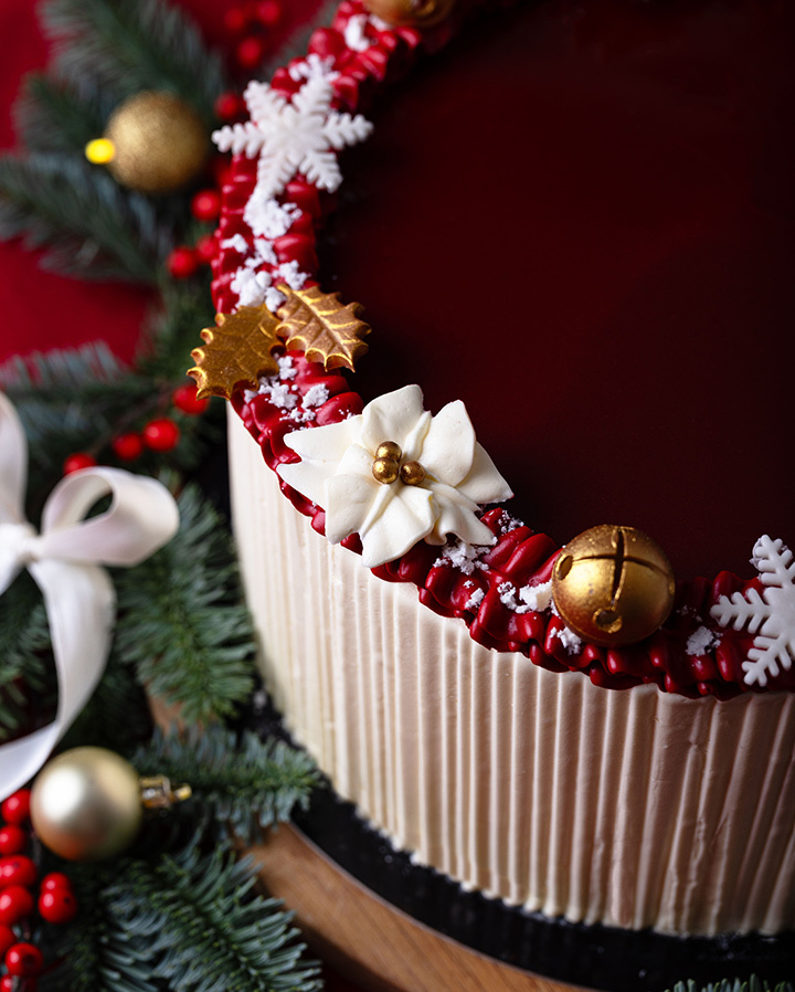 Äntligen är årets jultårta här! Smakerna i tårtan är röd pepparkaka, lingonkompott, apelsincurd och vit choklad. Vi hoppas att ni ska gilla den lika mycket som vi gör!